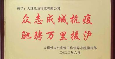 日前,大理州應(yīng)對(duì)疫情領(lǐng)導(dǎo)小組指揮部辦公室副主任師尚琨、協(xié)助副主任工作楊宗禮、物資保障組組長徐鍵等領(lǐng)導(dǎo)一行來到大理滄龍物流。將一塊印有“眾志成城抗疫 馳騁萬里援滬”的牌匾頒發(fā)給大理州企業(yè)家協(xié)會(huì)常務(wù)副會(huì)長單位——大理滄龍物流有限公司。以表彰大理滄龍物流在2022年抗擊新冠肺炎疫情中主動(dòng)無償承擔(dān)運(yùn)送大理州援滬抗疫物資的重任,以及對(duì)抗疫工作不遺余力的支持和善舉。今年3月底,上海等地疫情反復(fù),牽動(dòng)著大理各族人民的心,也牽動(dòng)著大理滄龍物流人的心。上海與云南大理相隔數(shù)千里,千山萬水,隔不斷滇滬情深。上海疫情發(fā)生以來,大