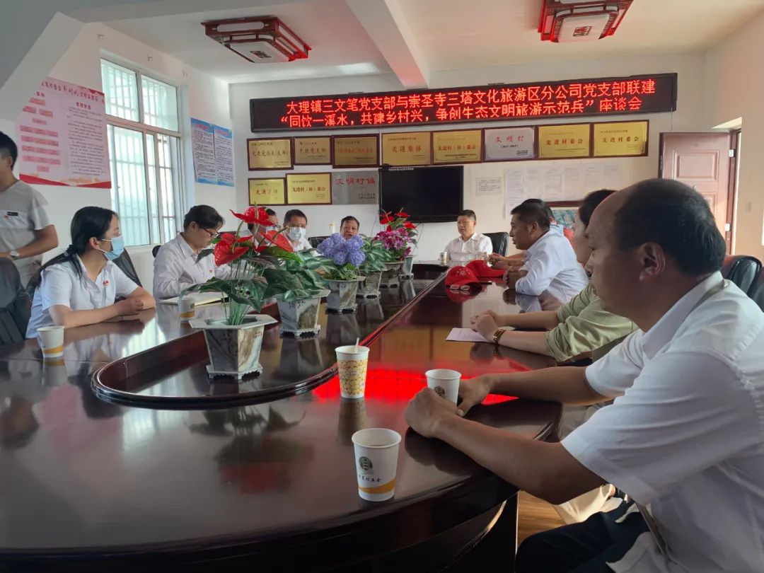 為學(xué)習(xí)貫徹習(xí)近平新時(shí)代中國特色社會(huì)主義思想,積極響應(yīng)習(xí)總書記“綠水青山就是金山銀山”的號(hào)召,根據(jù)大理市委“同心圓城市基層黨建綜合體活動(dòng)計(jì)劃”,“聚力蒼洱黨建綜合體活動(dòng)計(jì)劃”統(tǒng)一安排,以轄區(qū)黨組織結(jié)對(duì)共建機(jī)制為依托,大理州企業(yè)家協(xié)會(huì)副會(huì)長單位——大理旅游集團(tuán)下屬的崇圣寺三塔文化旅游區(qū)分公司黨支部與大理鎮(zhèn)三文筆黨支部于6月29日聯(lián)合開展“同飲一溪水,共建鄉(xiāng)村興、爭創(chuàng)文明旅游示范兵”支部共建活動(dòng)。
