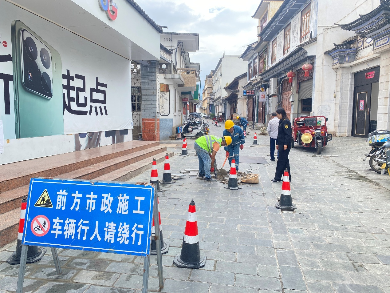 在日常維護(hù)工作中,巍山縣綜合行政執(zhí)法局秉持“早發(fā)現(xiàn)、早處理”的原則,強(qiáng)化監(jiān)督管理,對(duì)縣城主次干道、古街巷道、公園廣場(chǎng)、地下管網(wǎng)等市政設(shè)施開展常態(tài)化巡查。針對(duì)巡查中發(fā)現(xiàn)的地磚松動(dòng)、設(shè)施損壞、管道堵塞等問題,第一時(shí)間安排公司維修人員進(jìn)場(chǎng)維修。截至目前,公司已累計(jì)投入機(jī)械設(shè)備60余臺(tái)班,出動(dòng)市政維修人員283人次,累計(jì)維修破損缺失石板2156塊,拆除重復(fù)及損壞路牌75塊,維修更換井蓋、地漏16座,清掏堵塞雨污管道182米。