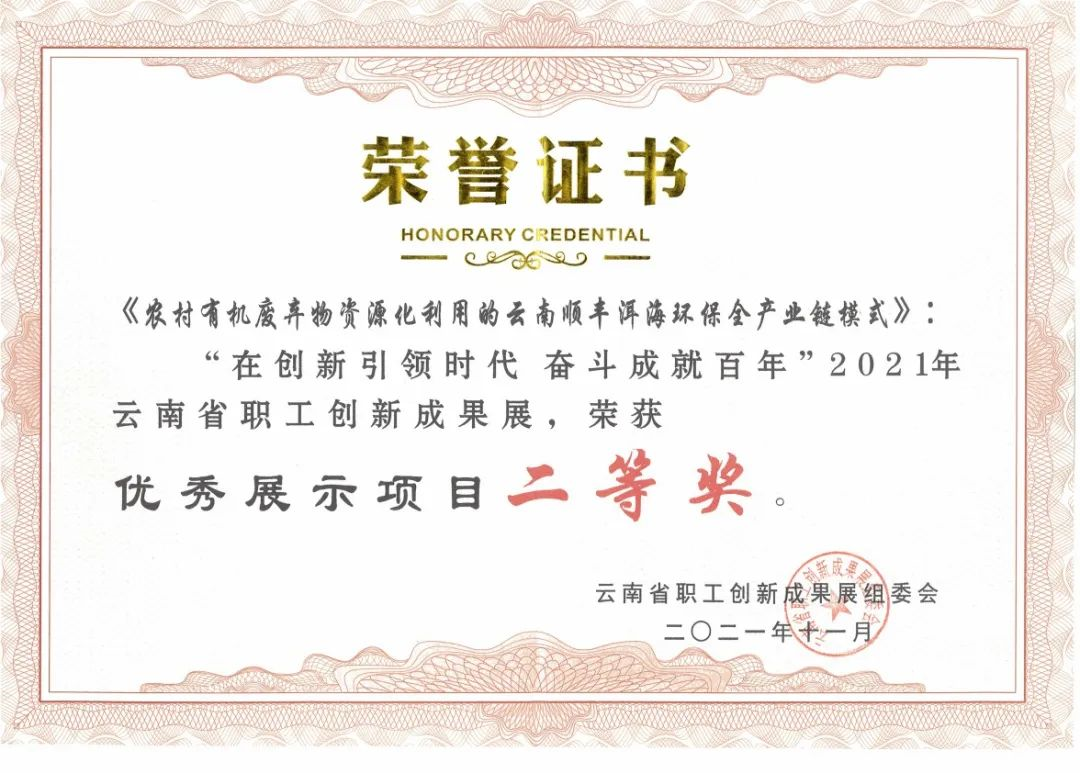 順豐洱海環(huán)保公司榮獲云南省職工創(chuàng)新成果展二等獎(jiǎng)