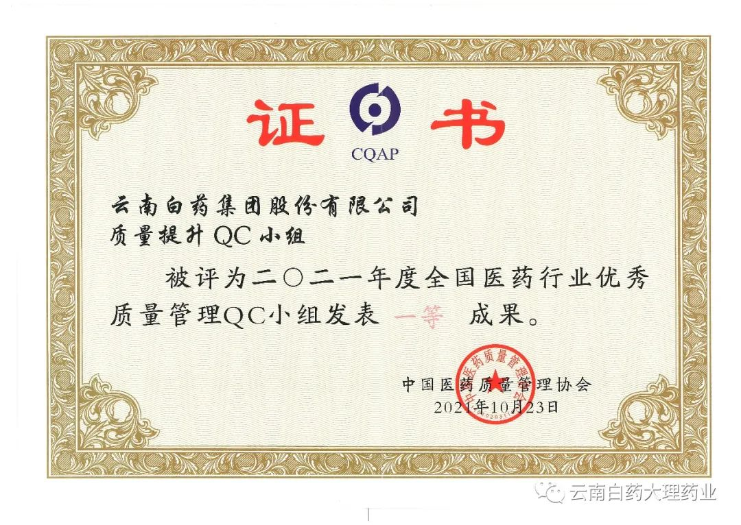 云南白藥大理藥業(yè)在第42次全國醫(yī)藥行業(yè)質量管理QC小組成果發(fā)表交流會上喜獲佳績
