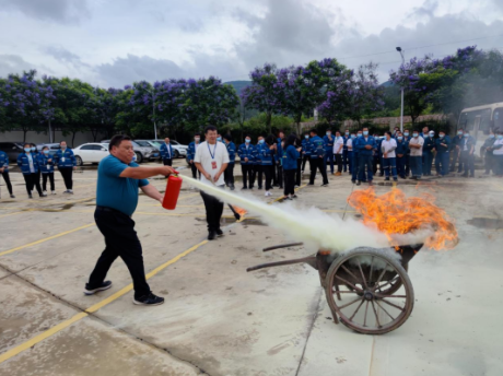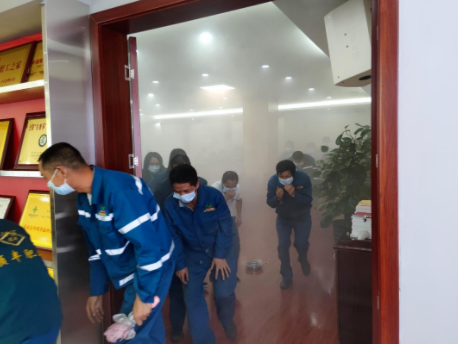 講解結束后隨即進行了模擬逃生演練和消防器材實操演練,整個過程全體職工反應迅速,動作準確,煙感探測器和自動報警等消防設施設備反應靈敏高效。