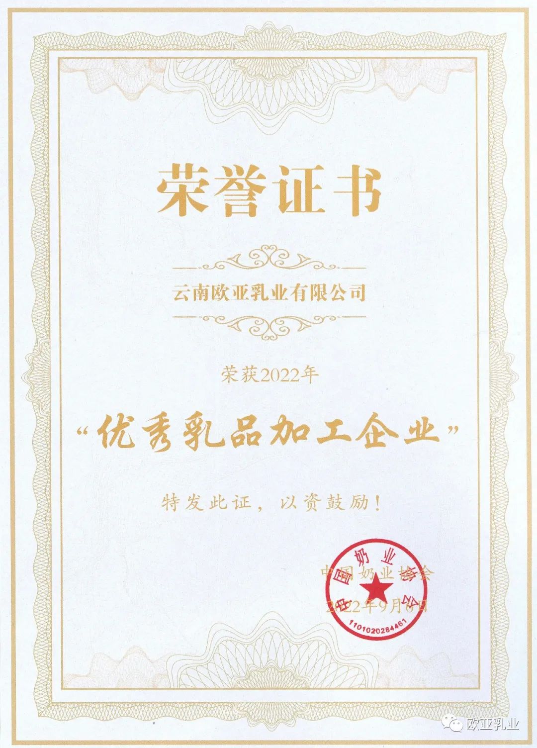 歐亞乳業(yè)獲全國“2022年度優(yōu)秀乳品加工企業(yè)”等兩項(xiàng)殊榮