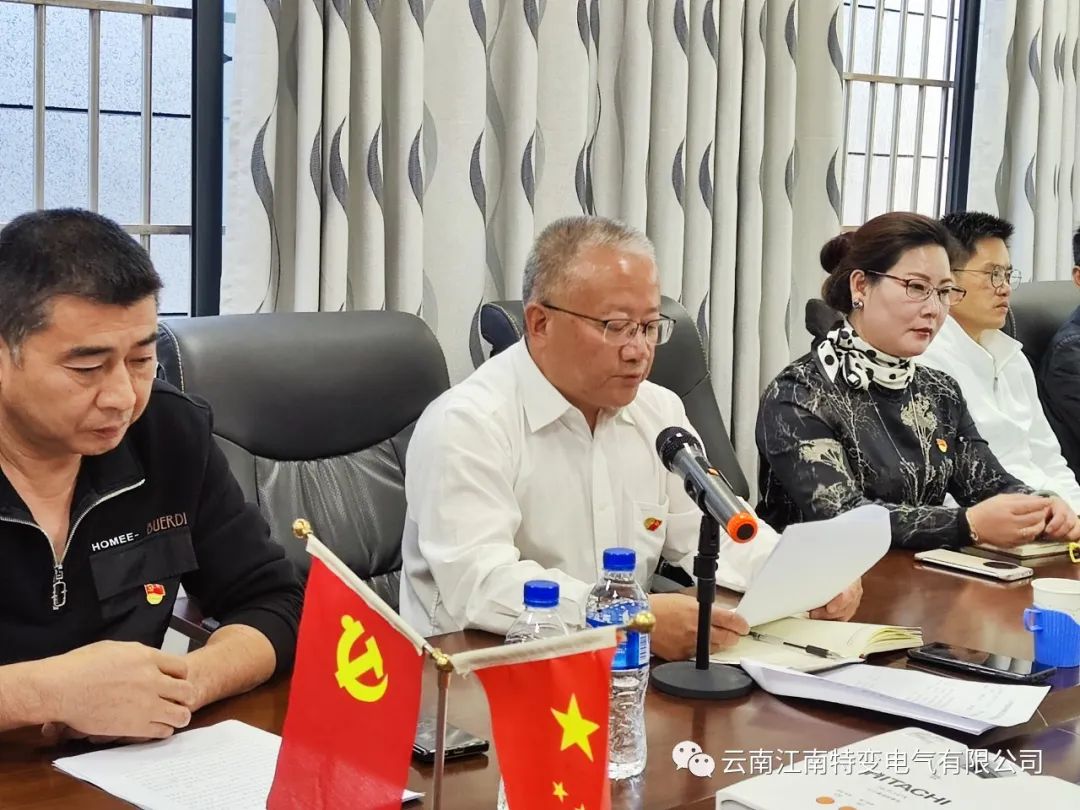為了深入學(xué)習(xí)貫徹黨的二十大精神,不斷提高黨員在新征程上的黨性修養(yǎng),全面增強(qiáng)黨組織的凝聚力和戰(zhàn)斗力,引導(dǎo)黨員發(fā)揮先鋒模范作用,樹牢“四個(gè)意識”,堅(jiān)定“四個(gè)自信”,做到“兩個(gè)維護(hù)”。11月5日,大理州企業(yè)家協(xié)會副會長單位——云南江南特變電氣有限公司黨支部與大理州溫州商會黨支部聯(lián)合開展了“學(xué)習(xí)黨的二十大精神”主題黨日活動,邀請了大理州委黨校馬云波副校長為大家講授題為《擘畫宏偉藍(lán)圖、引領(lǐng)新的航程、創(chuàng)造新的偉業(yè)——黨的二十大精神解讀》的專題黨課。